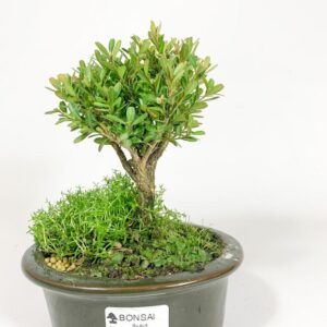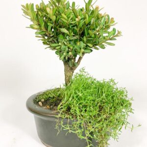 Esta árvore é um buxus com 02 anos. Um bonsai novo, ideal para iniciantes. Por ser um arbusto pode ser facilmente modelado. Experimente o prazer em ter um bonsai. Leve a natureza para perto de você.