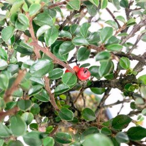 5 anos tem este belo cotoneaster, uma árvore incrível, linda com um fruto vermelho (não comestível)