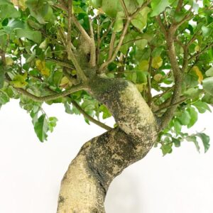 Um bonsai com uma idade avançada, um tronco lindo, torcido.